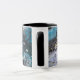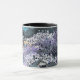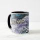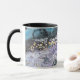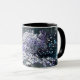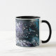 A unique coffee mug with an original artwork in blue, purple, and black by WestJack Studio. Designed in BC.