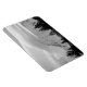 A black and white photograph of Mount Rainier. There are trees in the foreground. There are lenticular clouds forming and filling the surrounding sky at the top of the sleeping volcano. Image Copyright ©2023 Kimberly J Tilley. zazzle.com/store/developingnature