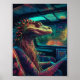 A colorful psychedelic lizard in a vehicle poster