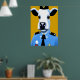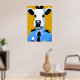 Cute and adorable Cow in blue police uniform on a yellow background. This is a AI generated art.