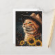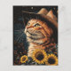 An adorable cowboy ginger cat posing in front of sunflowers at night AI generated art