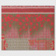 • Top and Bottom Sections: These sections have a greyish-brown background adorned with diamond-shaped motifs and small red floral patterns scattered throughout.