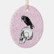 A Crow or Raven and Skull Halloween Pink and Black Ceramic Ornament