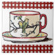 Vintage print of a bird tea cup with red checked border, 6x6 ceramic tile