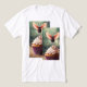 whimsical sticker illustration of a cute cupcake with wings, symbolizing sweetness, whimsy, and the magic of baked treats. with light color background for t-shirt design