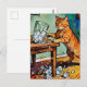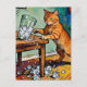 A cute ginger cat knocks over a glass of ice postcard