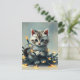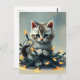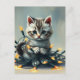 A cute Kitten Wrapped in Christmas Lights Postcard