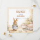 A cute rabbit in the kitchen with dishes save the date