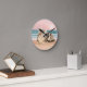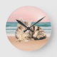 A Cuter Striped Cat Sitting on Beach with sunset Round Clock