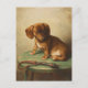 Carl Reichert’s A Dachshund Puppy is a delightful portrait featuring a small brown dachshund puppy perched on a wooden stool. The artwork captures the puppy’s curious and innocent expression with exquisite detail, from the soft texture of its fur to the subtle shading of its surroundings. Set in a warm, neutral-toned environment, the composition exudes a sense of coziness and charm, showcasing Reichert’s exceptional talent for lifelike and endearing animal portraits.