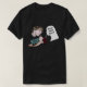My 11 yo wore adult XL (5’7” 165#). The 8yo is small framed. She wore adult small and tied it in the back. Grandma wore adult large with long sleeve shirt underneath. Tall girl adult medium. Dark haired male adult large. Good quality dark Heather gray, Gildan brand shirt. -it was next up from basic choice and cost about $20 per shirt. Not too thick or thin. Washed and dried well, no major shrinkage. Not see-through. Can wear a bra under it fine. Screen print is just as shown and well done, front and back.