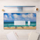 When you can’t get away for a day at the beach, keep the beach with you with the original photograph by ZoeSPEAK on this Desk Mat. It features a view of the ocean under a Florida blue sky filled with puffy white clouds. Sunbathers are lounging along the shoreline of golden colored sand as the waves roll in.
