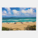 When you can’t get away for a day at the beach, keep the beach with you with the original photograph by ZoeSPEAK on this Kitchen Towel. It features a view of the ocean under a Florida blue sky filled with puffy white clouds. Sunbathers are lounging along the shoreline of golden colored sand as the waves roll in. Sea grape leaves in the foreground grow along the dunes by the steps leading down to the beach.