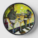 Original painting of two individuals are seated at a counter in a cozy diner. Bright yellow lighting illuminates the scene, creating a warm and inviting atmosphere. Painted by New York City, Fine Arts Artist, Gaye Elise Beda.
