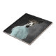 A deer in a vintage blue dress on a colorful, whimsical tile which will add an interesting piece to your decor.