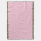 A decorative pink throw blanket with a subtle geometric pattern and fringed edges is displayed in two orientations: horizontally and vertically.
