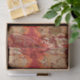 • Background: A distressed look with splashes of red over a darker base, giving it a vintage feel.