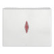 The design features a symmetrical ornamental design with a combination of red, black, and white colors. The central feature is an elongated diamond shape with intricate patterns inside, flanked by mirrored decorative elements that have floral and paisley-like motifs. This detailed design exhibits characteristics of traditional ornamentation and could be used in various decorative contexts or as a textile pattern.