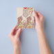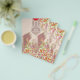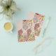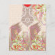 • Color Scheme: The design features a rich combination of red, green, and purple on a beige background.