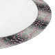 A designer cutting borad, the white meddallion in centre can be changed to any color on this pink watercolor patterned print, accented with turquoise, and charcoal grey. The black detail with in the background pattern can be changed to any color to match your decorating style.