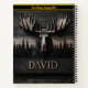 A striking wooden relief art piece features a moose with impressive antlers amidst a stylized forest backdrop, creating a captivating fusion of nature and craftsmanship.