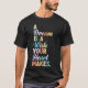 My 11 yo wore adult XL (5’7” 165#). The 8yo is small framed. She wore adult small and tied it in the back. Grandma wore adult large with long sleeve shirt underneath. Tall girl adult medium. Dark haired male adult large. Good quality dark Heather gray, Gildan brand shirt. -it was next up from basic choice and cost about $20 per shirt. Not too thick or thin. Washed and dried well, no major shrinkage. Not see-through. Can wear a bra under it fine. Screen print is just as shown and well done, front and back.