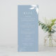 Imagine: Delicate white branch leaves dance across a dusty blue canvas, framing your personalized menu details in a modern and minimalist style. Customize it with your chosen appetizers, entrees, desserts, and beverages, making your guests' mouths water in anticipation. Add the bride and groom's names for a unique and personalized touch. This versatile menu seamlessly blends with the "A Delicate Dusty Blue Wedding Collection," ensuring a cohesive and elegant dining experience.