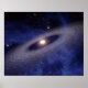 A faraway solar system where planets and asteroids circle around two suns featured with animation.