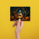Welcome to a magical Thanksgiving in an enchanted forest! This whimsical postcard features a delightful dragon chef, proudly presenting a roasted turkey over a warm campfire. Surrounded by pumpkins, seasonal dishes, and twinkling fairy lights, the scene captures the charm of a cozy, woodland feast. Perfect for fantasy lovers and anyone who enjoys a unique twist on holiday traditions, this postcard invites recipients to celebrate Thanksgiving with a sense of wonder and warmth.