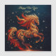 An illustration for a postcard or banner a fiery horse against a starry sky. Happy New Year greetings. ai generated