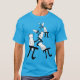 My 11 yo wore adult XL (5’7” 165#). The 8yo is small framed. She wore adult small and tied it in the back. Grandma wore adult large with long sleeve shirt underneath. Tall girl adult medium. Dark haired male adult large. Good quality dark Heather gray, Gildan brand shirt. -it was next up from basic choice and cost about $20 per shirt. Not too thick or thin. Washed and dried well, no major shrinkage. Not see-through. Can wear a bra under it fine. Screen print is just as shown and well done, front and back.