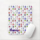 Whimsical colorful mouse pad, with lots of fun colorful cartoon owls against a white background. Purple text at the bottom is ready for you to personalize for yourself or as a gift. Great for home or office and makes a great gift idea for any owl lover.