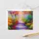 Keep in touch with this pretty ai generated image of a trail going through pretty orange yellow, red, blue, pink and green Fall leaves on an Autumn Day. This ai art is done in an oil painting style.
