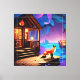 A Fox Sitting infront of The Cabin-47567 Canvas Print