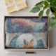 An interesting composition - a fox with fur that offers hints of cubism, amist a flower field and a huge moon, with an archway of embellishments.