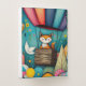 A little red fox takes flight in a hot air balloon in this mixed media pocket folder for back-to-school. Very cute and fun for a kid!