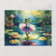 A frog ballerina dancing on a lotus leaf in a pond holiday postcard