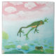 A Frog Jumps Into The Pond Illustration Ceramic Tile