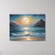 A full moon over the ocean with a mountain canvas print