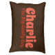 Dog cushion bed in chocolate brown and coral orange personalize the fun text to any name or message, or text is removable. The background and text can be switched to any color choice .