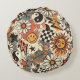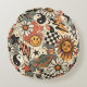 A fun retro 90s pattern featuring cheerful happy f round pillow
