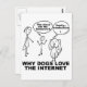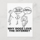 Why Dogs Love The Internet Post Card. Funny stick figures cartoon of a student explaining "The Cloud ate my homework" to the teacher who isn't buying it. Meanwhile the dog with a thought bubble thinks "Finally... vindication!" Homework excuses will never be the same thanks to the internet and paperless systems.
