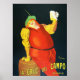 The "La Cruz del Campo" beer advertisement (1906) by Leonetto Cappiello is a vibrant and dynamic lithographic print that captures the essence of the brand’s identity. The artwork features a bold and energetic design, showcasing a striking female figure holding a glass of beer. With Cappiello's signature style, the composition uses vivid colors and dynamic curves, making the subject appear almost larger than life. The ad promotes the Spanish beer brand with a sense of liveliness, power, and joy, effectively drawing attention to the product's appeal. The image’s bold colors, particularly the bright yellows and reds, and the use of motion in the design reflect the energetic and celebratory nature of the brand. Cappiello's use of contrasts and simplified shapes brings a modern flair to the advertising medium, turning the piece into a work of art that also serves as a powerful marketing tool.