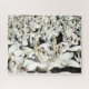 This puzzle was adorable. It was given to an adult who loves Great Pyrenees. It wasn't a quick puzzle to assemble because of all the white, but he had fun doing it. The quality of this puzzle was excellent.