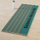 For the garage mechanic, long mat, personalize text, or text is removable, the turquoise wide center stripe and background can be changed to any color on this stripe design, the back in black can also be changed. Ideal to protect the floor, your craft table, or workbench.
