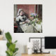 Imagine a quiet corner of an English manor, where lilac roses bloom like whispered secrets. Our off-duty housemaid, apron cast aside, arranges them with care. Sunlight spills through the window, illuminating her gentle touch. The room hums with the fragrance of vintage elegance. Frederick Smallfield captures this tender pause, a moment suspended in time. It’s a floral reverie, where everyday beauty dances with grace.