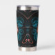This peach fractal flower on a turquoise background wraps and warps around the insulated tumbler that helps keep the secrets inside warm or cold as needed. The petals and stems bend around to form question marks, echoing the thousand questions that lay unanswered just below the dark waters of the psyche.