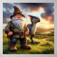 This captivating fantasy artwork features a robust dwarf warrior, wearing battle gear, resting beside his fierce companion. Set against a breathtaking landscape of serene rivers and dramatic skies, this duo embodies both strength and camaraderie. Perfect for lovers of fantasy, mythology, or anyone seeking a whimsical yet epic piece for their space.