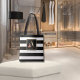 A Gold Floral Monogram | Black White Gold Stripes Tote Bag