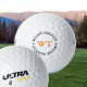 At its core, the ball features a timeless circle monogram, a mark of distinction that sets it apart on the green. The golfer's name is artfully inscribed in a classic serif font, creating a harmonious balance between tradition and modernity. The initials, boldly presented in a striking yellow hue, add a touch of vibrancy to the design, ensuring that every swing is accompanied by a visual statement.